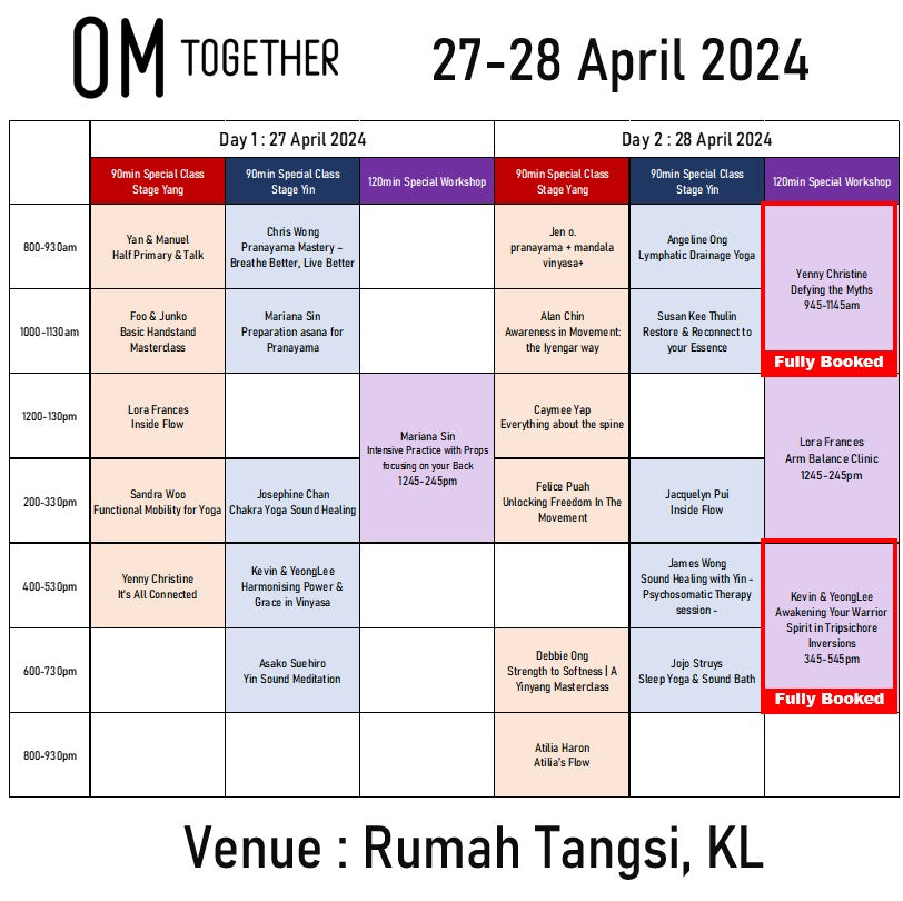 OMTOGETHER is back! Dive into the Yang Stage with 12 exhilarating, body-moving classes, journey inward at the Yin Stage with 10 meditative sessions, and experience the exclusivity of 5 special workshops limited to a few lucky participants. Secure your tickets before they're all gone!