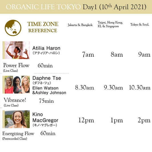 ORGANIC LIFE TOKYO - Day1 (10 April 2021) Atilia Haron, Daphne Tse & Ellen Watson & Ashley Johnson, Kino MacGregor - completed