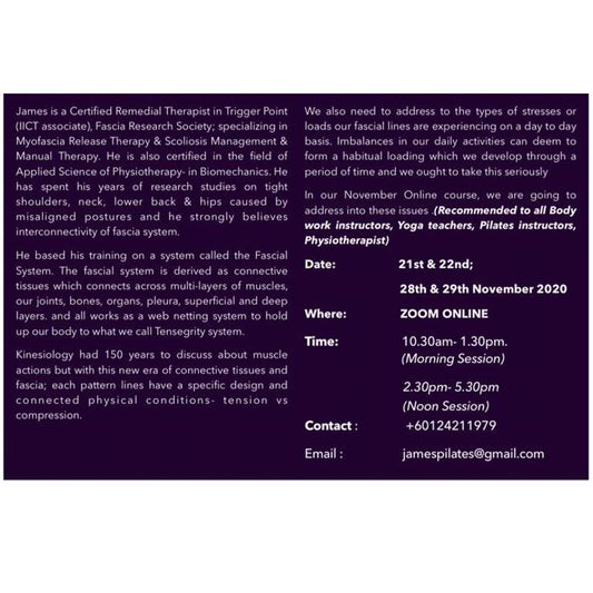 [Online TTC] FASCIA RELEASE ONLINE TRAINING WITH JAMES' WONG (21,22, 28 & 29 Nov 2020)