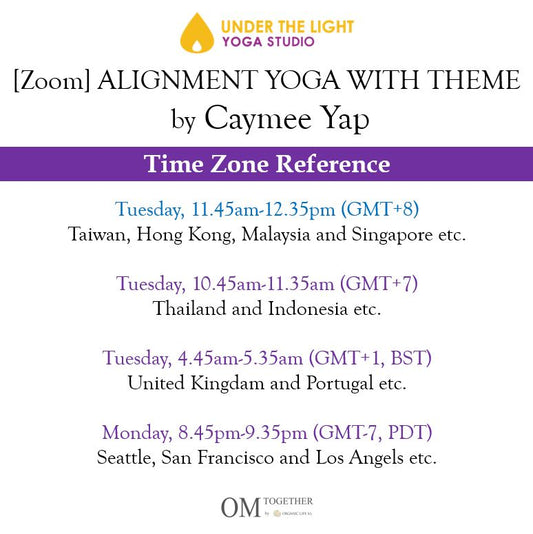 [Zoom] ALIGNMENT YOGA WITH THEME by Caymee (50 min) at 11.45am Tue on 22 Sep 2020 -completed