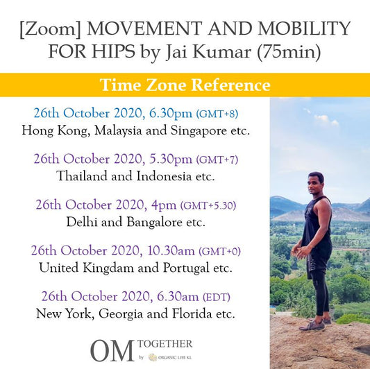 [Zoom] MOVEMENT AND MOBILITY FOR HIPS by Jai Kumar (75 min) at 6.30pm Mon on 26 Oct 2020 -completed
